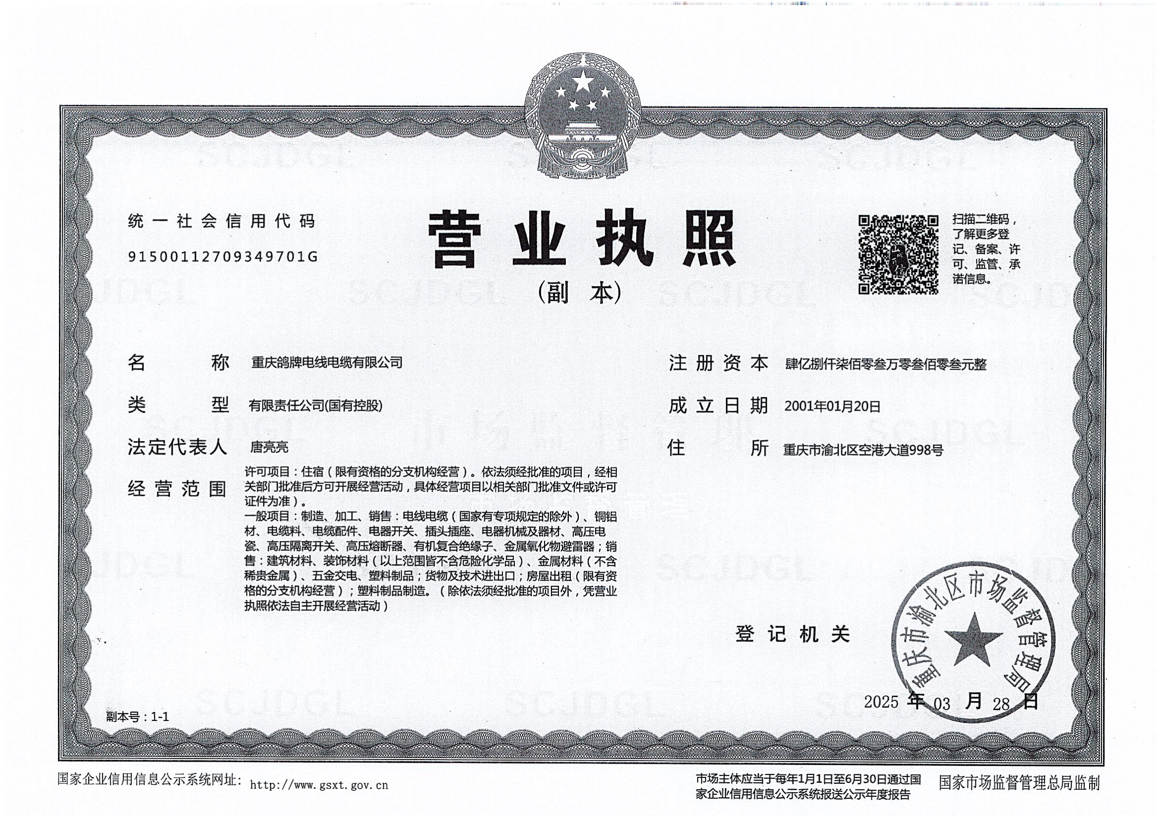 目前,公司鴿牌系列產(chǎn)品被評為“國家質(zhì)量AA信譽(yù)資質(zhì)”、“重慶名牌產(chǎn)品”;鴿牌公司被授予“全國五一勞動獎(jiǎng)狀”、“國家高新技術(shù)企業(yè)”、“全國工業(yè)品牌培育示范企業(yè)”、“國家級綠色工廠”、“重慶老字號”等多項(xiàng)稱號,蟬聯(lián)11屆“中國線纜產(chǎn)業(yè)最具競爭力企業(yè)100強(qiáng)”,連續(xù)14年入選“重慶制造業(yè)企業(yè)100強(qiáng)”,連續(xù)17年入選“重慶企業(yè)100強(qiáng)”。